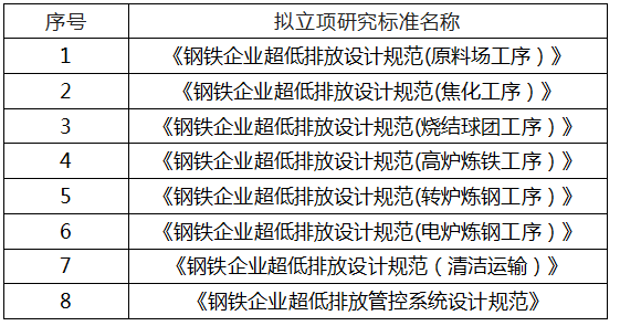 1、关于《钢铁企业超低排放设计规范》系列标准立项研究的通知